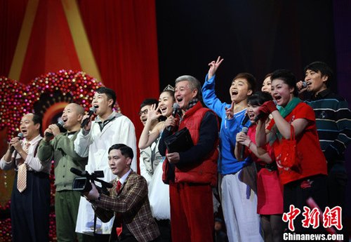 趙本山紅馬甲與眾弟子亮相 王小利左2 鄧霞 攝資料圖