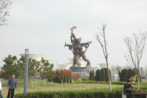 四月下旬的國際會展中心,晴空萬里、藍(lán)天白云、春暖花開、陽光明媚,整個會展中心與黃河路以北的東營區(qū)新區(qū)的黃河公園連成一片,好不壯觀。會展中心的外面鑼鼓喧天、人山人海、好不熱鬧。小商小販們也不錯過這賺錢好時機(jī),賣著各種特色小吃,叫賣聲此起彼伏。