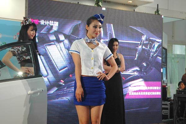這次會展中心內(nèi)部展位分為1號展廳、2號展廳與3號展廳,匯集了國內(nèi)外的50多個汽車品牌。這次展會上,各個汽車廠家都邀請了漂亮的模特前來助陣,可謂是香車美女呀,招引的各路記者的閃光燈連續(xù)不斷,也讓前來參展的廣大市民大飽眼福啦!