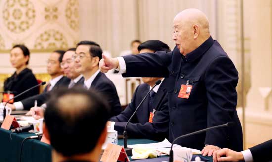 86歲的湖南省代表團(tuán)代表熊清泉豎起大拇指說,如果有人問他會議開得怎么樣,他要連說“三個好”:一是報告寫得好,集中了全黨智慧;二是報告作得好,一氣呵成;三是代表聽得好,全場掌聲達(dá)38次之多。新華社 圖
