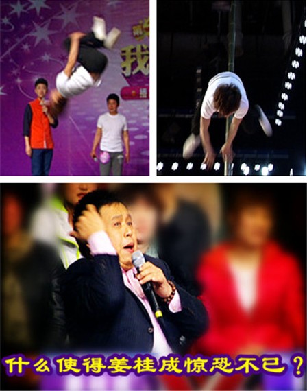 今晚,黃長(zhǎng)健與他的搭檔表演的空中竿上表演,非常驚險(xiǎn)刺激。首先他的搭檔把一根高6米多的竹竿扛在肩上,在沒有任何防腐措施的情況下,黃長(zhǎng)健在高度6米(包括底下的人共7米多高)的竹竿上,表演了多種高難度的驚險(xiǎn)動(dòng)作,令在場(chǎng)的所有觀眾與三位評(píng)委老師嘆為觀止,叫絕聲一片,真可稱得上是“藝高膽自大”,雖然觀眾與評(píng)委們被他們的驚險(xiǎn)表演嚇出了一身冷汗,但是他們兩個(gè)表演完顯得輕松自如、非常的淡定,這就叫真正的“功夫”,黃長(zhǎng)健與他的搭檔最終順利晉級(jí),希望黃長(zhǎng)健能夠闖進(jìn)年度總決賽,獲得好成績(jī)。衷心祝福您----雜技小子黃長(zhǎng)。