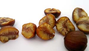 現(xiàn)在我告訴你一個簡單易行的好辦法,就是在你煮栗子的時候,在鍋里放一點鹽,這樣就沒問題了?梢陨踝釉趺崔k呀?也很簡單,你可以把生栗子放在微波爐里,用中火加熱30秒種就好了,如果拿出來還不好剝,就再放進微波爐里加熱30秒,這樣就完全沒問題了,不信你就快去試試吧!