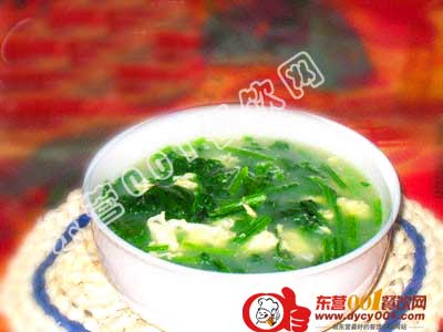 原料:菠菜150克、雞蛋1個、胡蘿卜15克 調(diào)料:花生油、鹽、味精、蔥姜絲 做法: 1、將菠菜洗干凈,切段;胡蘿卜去皮,洗凈,切成絲;雞蛋磕入碗中,攪勻備用。 2、凈鍋置火上,倒入花生油燒熱,下蔥姜絲爆香,放入胡蘿卜絲、菠菜煸炒,倒入水,調(diào)入鹽、味精燒沸,淋入蛋液,稍煮即可。