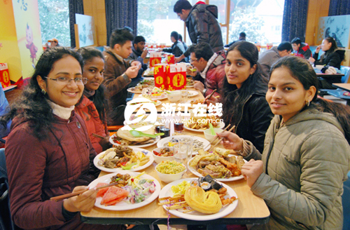 雖然還沒(méi)到自己國(guó)家的春節(jié),可這誠(chéng)意滿滿的中國(guó)年夜飯讓浙大500多位留學(xué)生開(kāi)了眼界、開(kāi)足了“胃動(dòng)力”,有的更是拖家?guī)Э,共享美食盛宴。巴基斯坦的留學(xué)生亞斯?fàn)柍缘弥必Q大拇指:“味道杠杠的”!